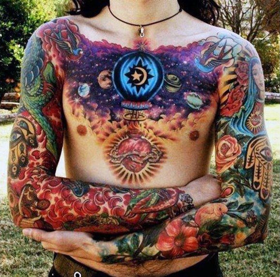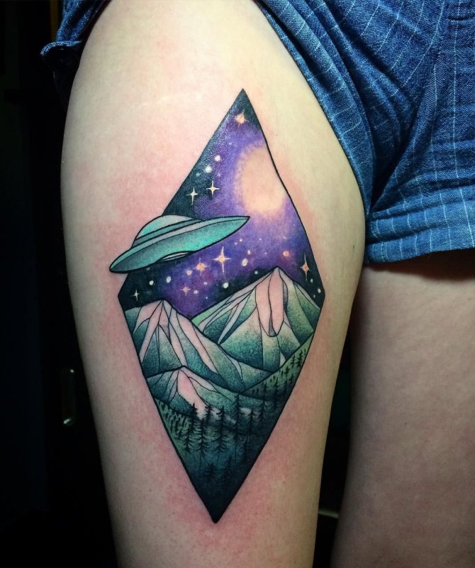 Recently, tattoos are increasingly popular among the fair sex and men. The whole thing is that with the help of tattoo people are trying to express their originality and individuality, to decorate their body and make themselves more sexy for the opposite sex. It is known that since ancient times people are fond of space, because the unknown and extraterrestrial life always attracts. Many people like to look at the stars, admire the moon or the sun, and many people try to display a part of the galaxy on their body, choosing tattoo designs with the image of space.
