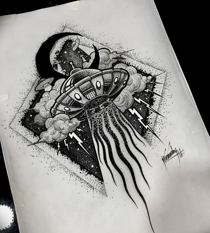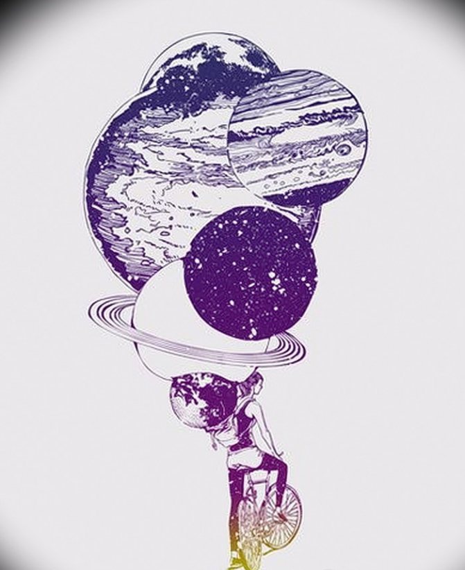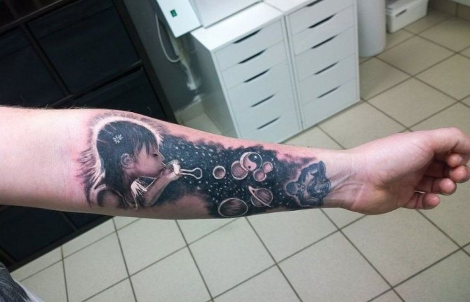 When choosing a tattoo sketch, it is very important to determine the area of the body where the space will be depicted. The most popular are space tattoos on the sleeve, as it is very beautiful and original. Other options for the image of space: