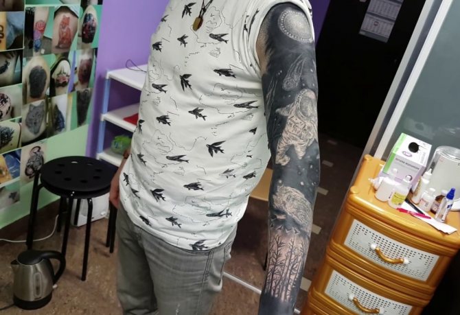 - On the arm - the tattoo requires a lot of space, so other than the sleeves do not consider other options.