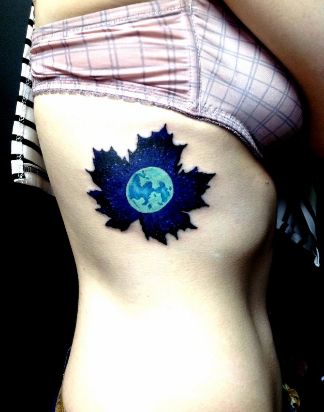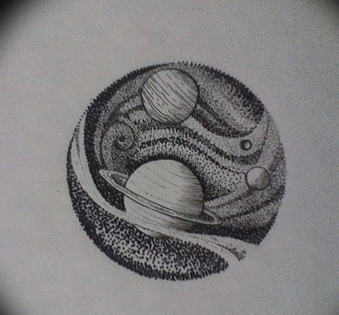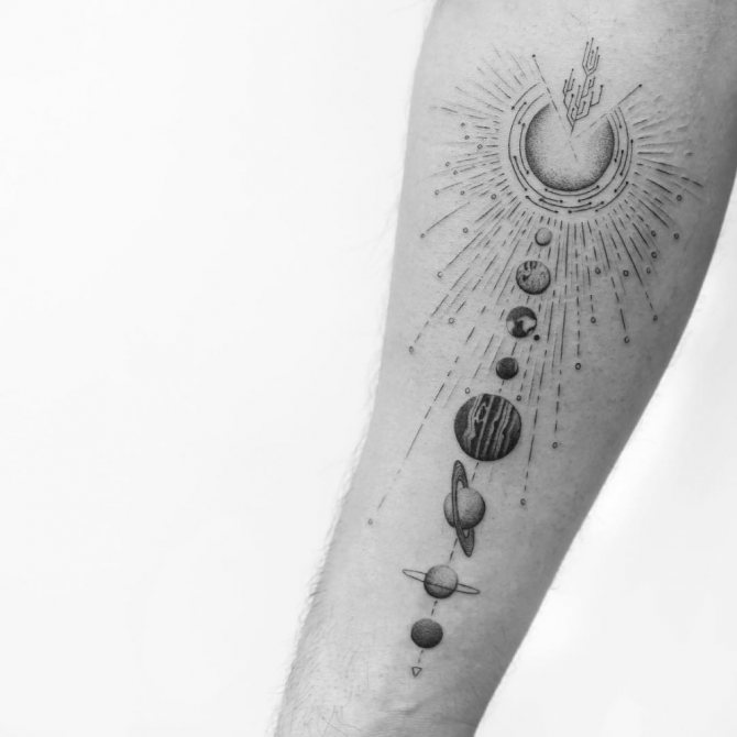 - Tattoo with one planet and its satellite - often such tattoos are used by girls, giving preference to the Earth and the Moon. They are a great symbol of female energy, indicate fertility and improve the appearance of the girl. Men give preference to the sun - the symbol of the center of the universe and space, which speaks of the self-confidence of its owner.