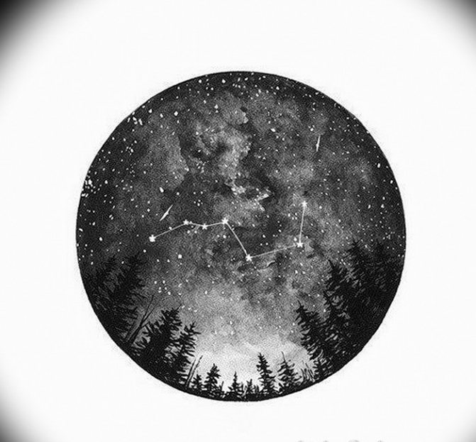 - Tattoo with the image of a constellation - a sketch that is very popular in Eastern countries. Often order constellations that coincide with their zodiac sign, with a sketch performed in graphic style.