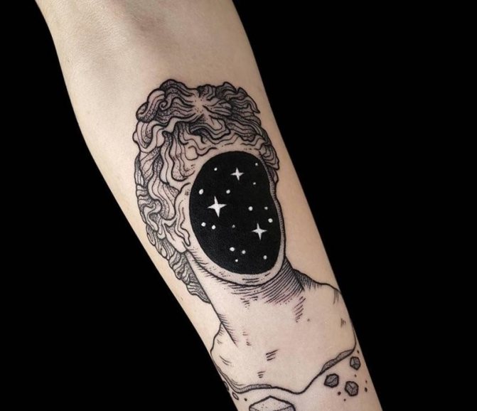 Among the popular variants of tattoos with the image of space stand out the following ideas: