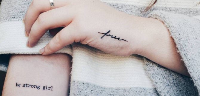 Nabbing such tattoos is preferably above the waist. For the text to be well read and not confused, it is made on the back, shoulder blade, along the forearm.