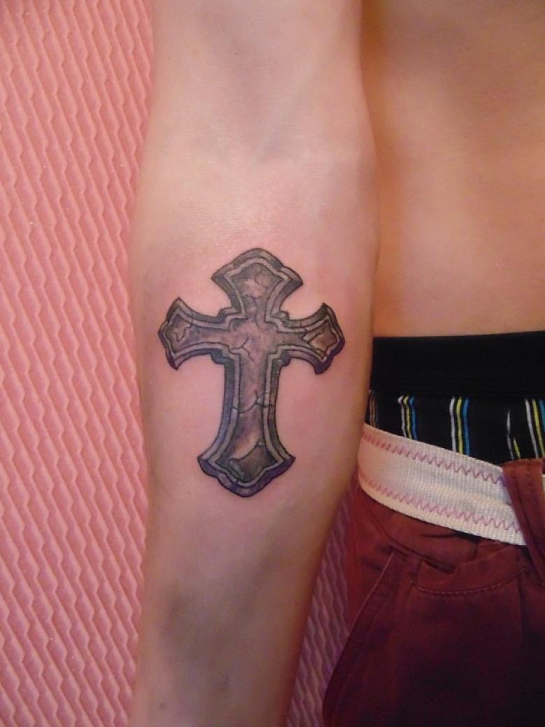 Tattoo in the form of a cross on the arm