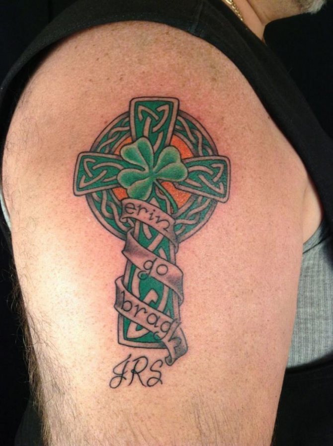 Usually, tattoos are decorated with Celtic patterns in which knots symbolize the connection between the spiritual and physical worlds, and loops without beginning and end symbolize the cycles and eternity of existence. The most common colors are black, green and gold.