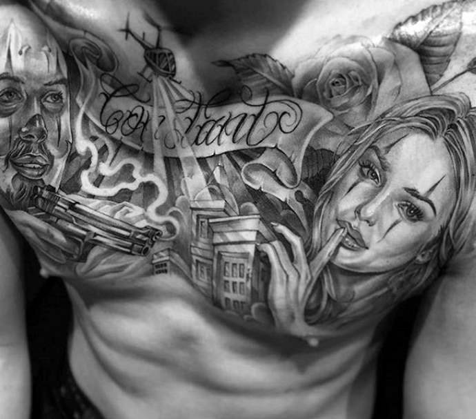 Tattoos made in the style of Chicano, very easily recognizable, due to the fact that they have their own distinctive differences among other tattoos and an interesting history of origin. Born not so long ago, the first tattoos date back to the middle of the twentieth century. If this is the first time you have heard the name Chicano, then you would probably attribute it to Mexican and you would be one hundred percent right. The story began during the formation of numerous Hispanic gangs and continues to this day. The first bearers were Mexican gangsters serving time in American prisons, who came up with a unique tattoo concept and began to spread it among their like-minded and fellow prisoners.