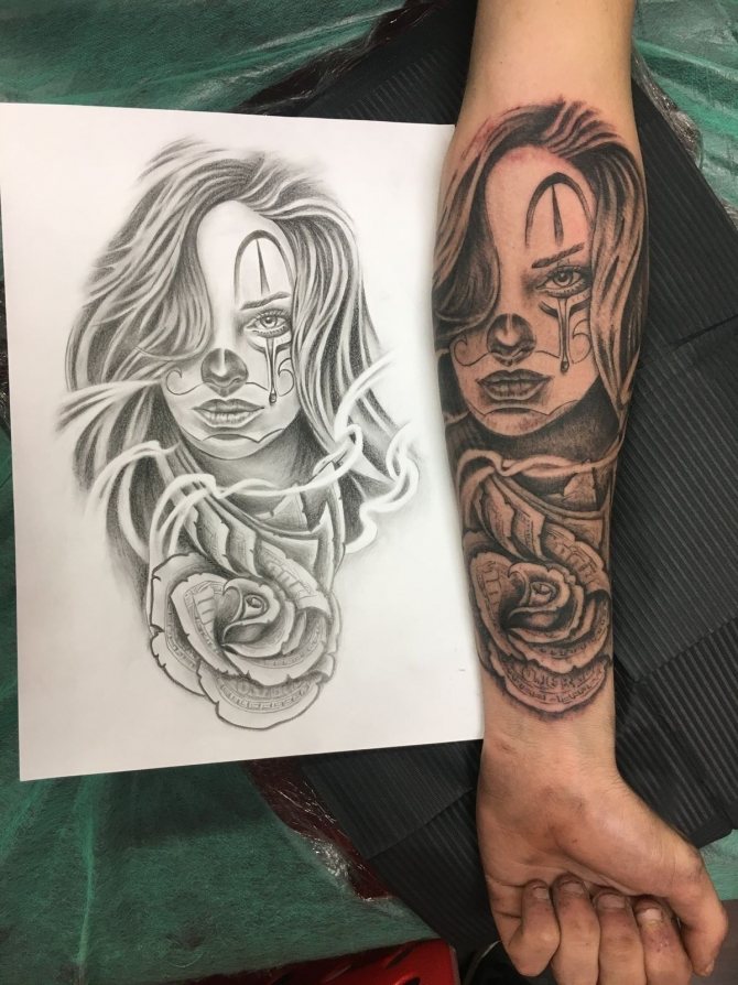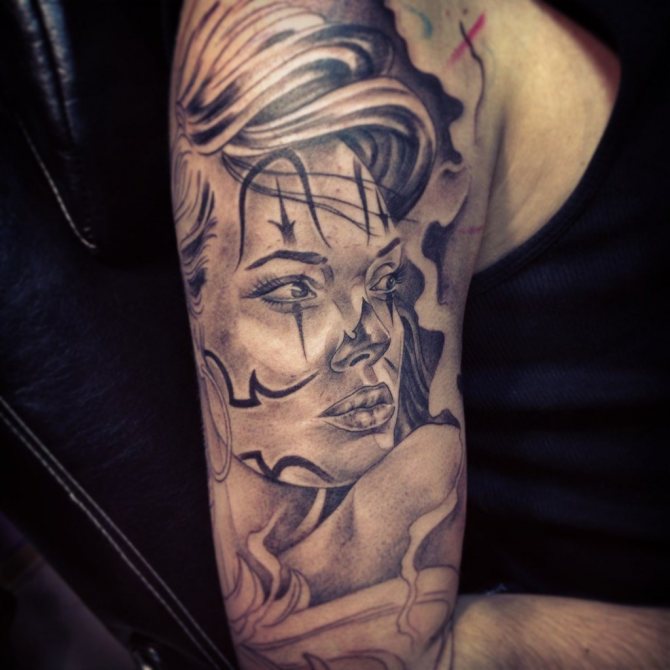 Chicano tattoos (male and female) do not have distinctive images. There is a clearly developed technique of their application. It is acceptable to include other sketches that seem appropriate. Classic drawings in terms of frequency of application remain a priority.
