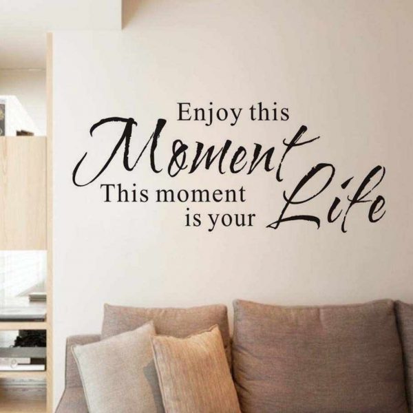 Choose text decor should be selected, taking into account the general style of decoration and the purpose of the room. For the bedroom, we recommend relaxing and restful, calming phrases, written in letters with soft outlines, calm pastel or muted colors. For the kitchen, bright, appetite-exciting and mood-enhancing juicy colors are appropriate.