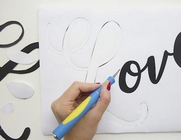 If you could not find the desired one among the ready-made stencils, you can make your own. To do this, use letters printed on an A4 sheet, connected into the desired phrase.