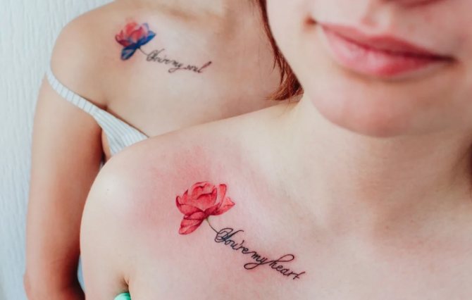It is worth to take note of such places as the forearm and collarbone. In rare cases, the inscription is printed under the chest. The inscription can go into a small drawing, then the area of application becomes more extensive.