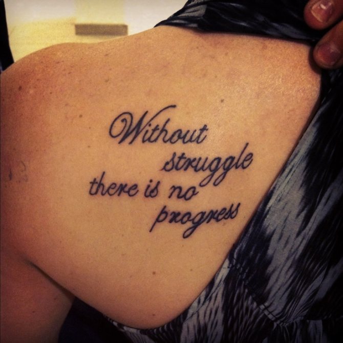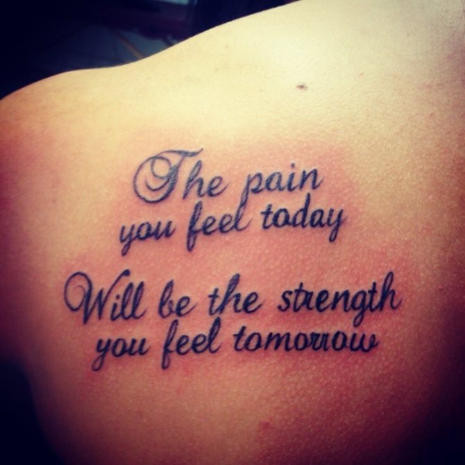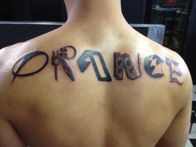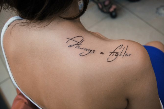 Images on the back are popular, but in this case some nuances are taken into account. An inscription placed in the middle of the back is poorly visible because of the movement, and letters on the shoulder or shoulder will look unusual, and flirty. A universal place to place the letters is considered the wrist, the tattoo looks like a bracelet on the hand. Selection of the font for the tattoo: an individual process, depending on the characteristics of the physique, personal preferences for design, tips of the master and professional skill.