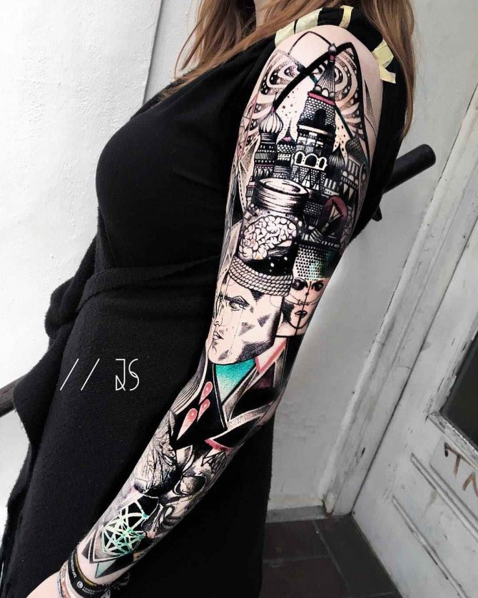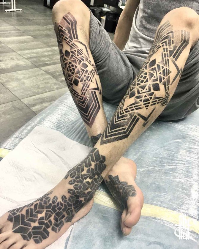 If you decide to apply a similar tattoo, you should read the examples of works of our masters, where you will find a variety of options. As sketches can be chosen any drawings depicting celebrities, animals and not only. The most common options are a variety of geometric shapes, ornaments, unusual patterns, as well as religious symbols. This style perfectly combines with such directions as "old-school" and "thrash polka".