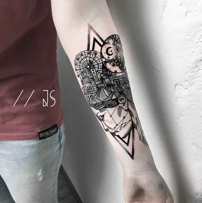 Tattoos in the style of Dotwork at first glance are very similar to the drawings of architects. The clear geometry gives the designs a certain charm and glamour. Tattoo Dotwork - is a creativity, so the master, performing such a drawing, must be a true professional in his business. After all, a dotwork tattoo is an extension of the essence of a person.