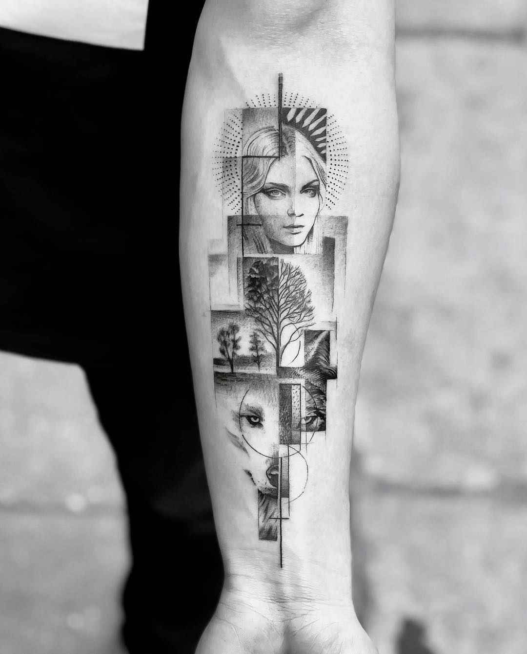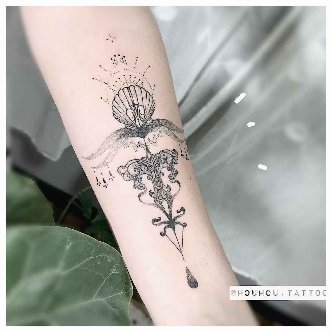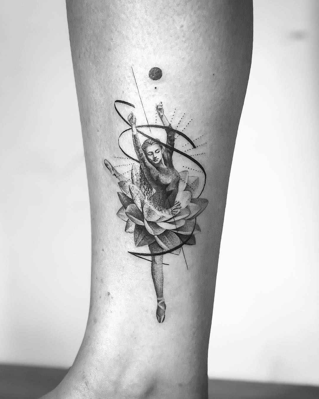 Dotwork tattoos are known for ornamental designs. The versatile direction of dotwork allows you to combine ornaments with any variety of elements. Even volumetric tattoos in a realistic style with the addition of colored ornaments look wonderful and mesmerizing. With the help of ornamentation in a Dotwork tattoo, masters create beautiful and full of grace paintings. The ornament is a certain story depicted on the body. With such a drawing you can tell about your past or share your dreams.