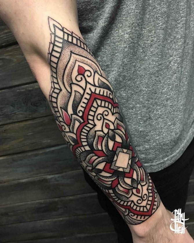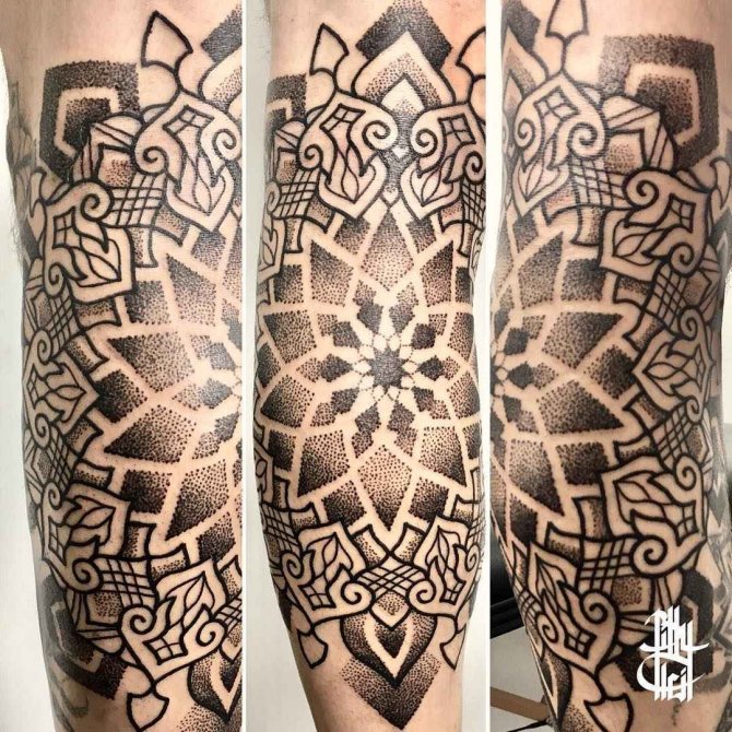 The specifics of the introduction of the pigment requires special skill and painstakingness. Each dot is applied separately, manually or with the help of an induction machine. When making a sketch, the master must well think through the composition, calculate the proportions, and maintain symmetry. Therefore, when choosing a performance in the point technique, it is worth turning only to professionals.