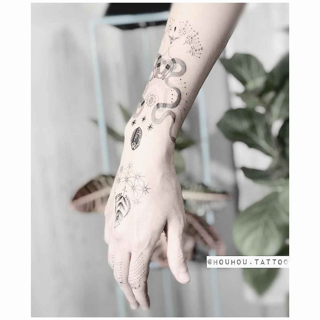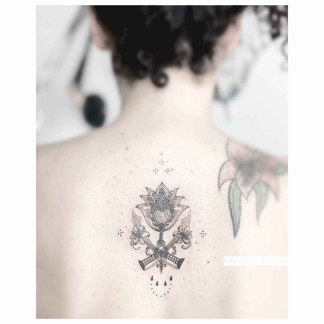 The most popular subjects for dotwork designs are ornaments in the style of abstraction. Also, such tattoos are performed in the form of geometric figures that depict certain objects. Recreations of flowers, plants or celestial bodies are hugely popular. Often you can find realistic drawings made in the style of Dotwork, complemented by various ornaments. Using the technique of dotwork, you can perform any tattoo sketch.