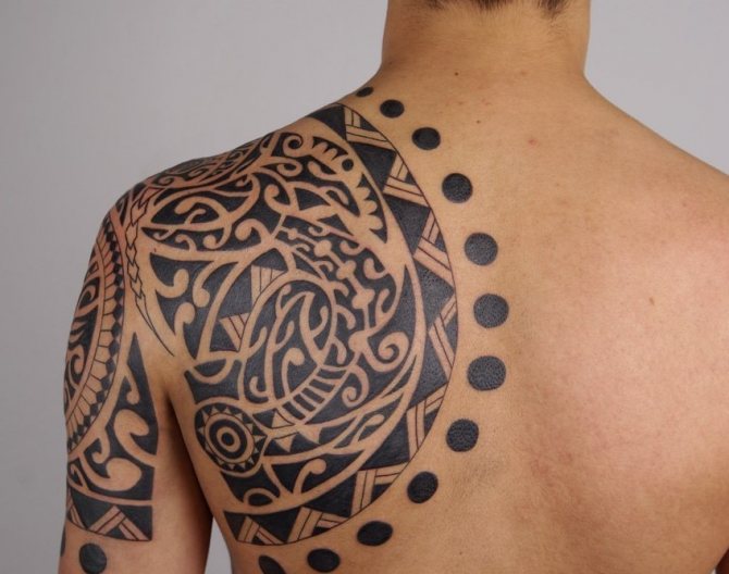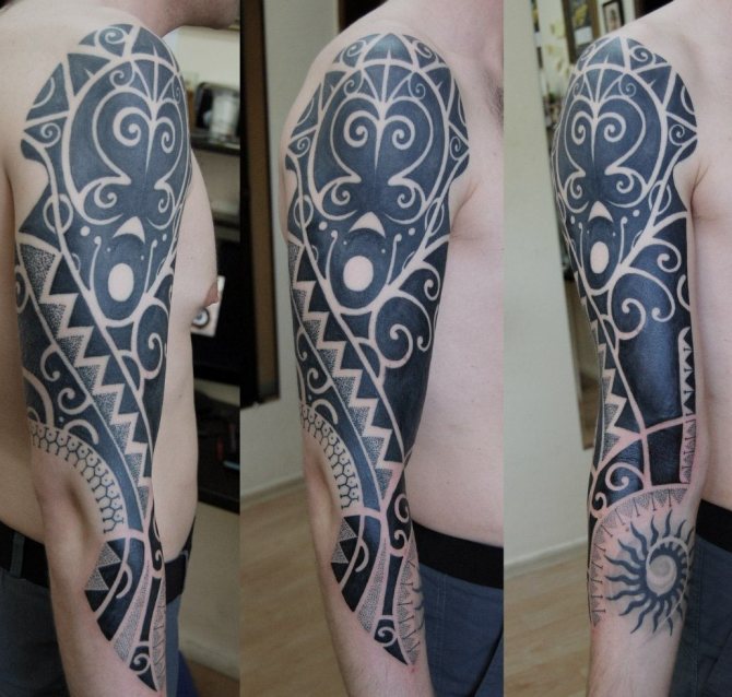 The main distinguishing features of the ornamental style are symmetrical patterns and accuracy of lines. Often the finished work contains an image of the sun or moon, as well as drawings made on the sea or floral themes. When creating a tattoo, it is important that the image is filled in: