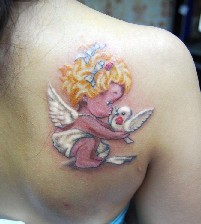 Definitely, if a person consciously chose a tattoo with a wolf, then he has such qualities as: endurance, leadership, self-confidence, care, loyalty, etc. In the case of a woman, the image of a wolf means that she is infinitely faithful to her family and will protect it from all the hardships. Mythical characters from fairy tales also enjoy a certain popularity among girls. Most often it is a leprechaun, an elf, a fairy, a dragon. A very interesting option for the tattoo is the face of an angel. That guardian angel is guarding you all your life, follows you on your heels and helps you. Such a tattoo will perfectly complement the feminine image.
