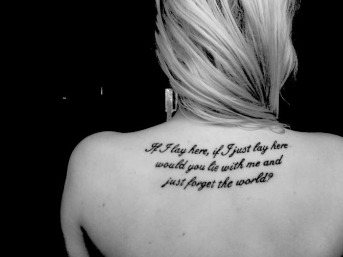 The popularity of text tattoos has one drawback: it is difficult to come up with such a phrase in English for a tattoo, which no one else has. It comes to the fact that the most rspread quotes and sayings can be seen on the body of several of your acquaintances at once. To avoid such an embarrassment, it is necessary to do tattoos thoughtfully. Beauty is beauty, but fashion passes, and the chosen inscription will stay with you for a very long time (for life, if you do not resort to the procedure of tattoo removal).