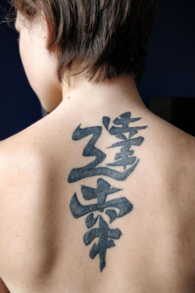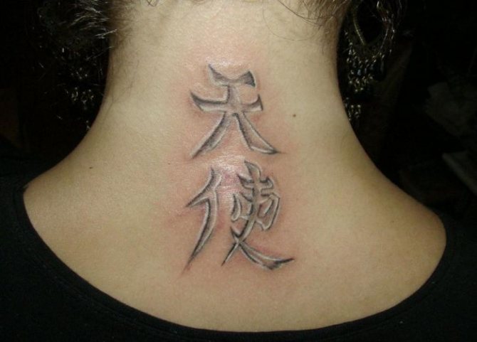 Tattoo with the image of hieroglyphs is one of the most popular in the world. Unusual and beautiful oriental symbols are printed both individually and in whole sentences. Each character has its own meaning. Such inscriptions attract not only the attention of others, but also good luck. Characters are also used as amulets and protect us from all kinds of troubles. They are drawn in black, with an addition of yellow or gold colors. Stuffed on the neck, wrists, or shoulder area.