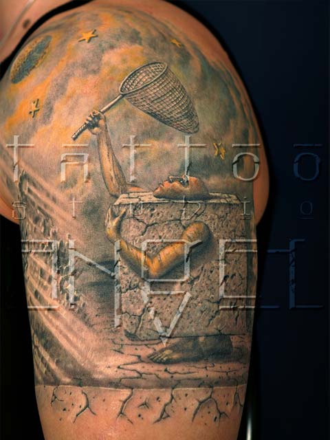 Pavel "Angel" Arefiev. Born in Voronezh. Master of art tattoo and airbrush, member of the Russian Guild of Professional Tattooists. Engaged in tattooing since 1991. He studied at Voronezh State University at the Faculty of Physics, which he later graduated from. After graduation he decided to develop his creativity instead of working in his profession. His artistic perception of the world formed thanks to his parents. In this direction he developed exclusively independently, studying anatomy, coloristics, composition, etc. Through communication with other artists I gained invaluable experience, collecting important information literally by grains. He discovered surrealism thanks to such artists as H.R. Giger, Zdzislaw Beksinski and others. His first work was made in the army, like many other beginners at that time. That's how it all began. On his return from the army he began to learn the complex craft of tattooing. I stood behind the back of the master, watched his work and drew and drew, that would later become a master, to earn a name and weight in the domestic tattoo industry. Later together with his wife opened his own studio in which Paul taught this difficult profession many young tattooists.