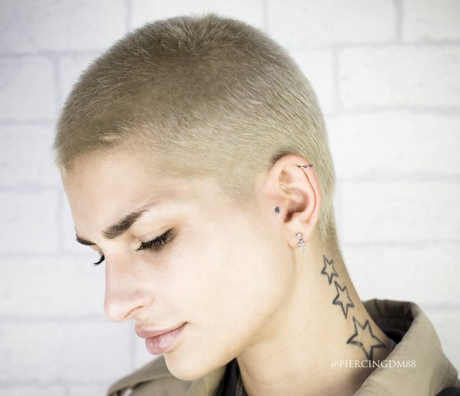 The history of ear cartilage piercing goes back to the depths of centuries: in the past, every element of the image had meaning, now the stylish earrings-ring - a beautiful, spectacular element of a complete image. To get the result, the piercing is done with a special tool.