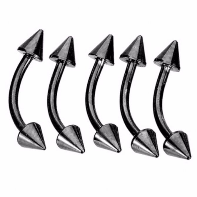 This is a straight wand with holes at the ends, on which screws, balls, pebbles can be fixed. The base is made of bioplastic, medical alloys or precious metals. They are used not only for ear piercing, but also in piercing places on the body: the bridge of nose, navel, tongue, nipples, sometimes intimate areas. Standard sizes range from 1.6 mm to 50 mm, depending on the destination.