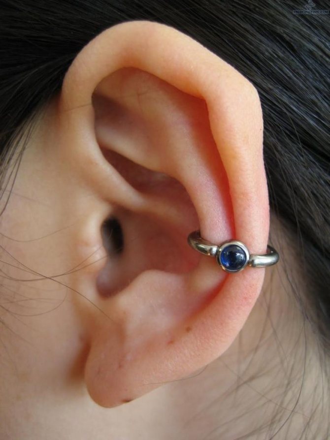 Initially, before piercing, decide on the thickness of the earring, because the hole in the cartilage is not stretched, as in the case of the lobe.