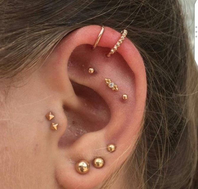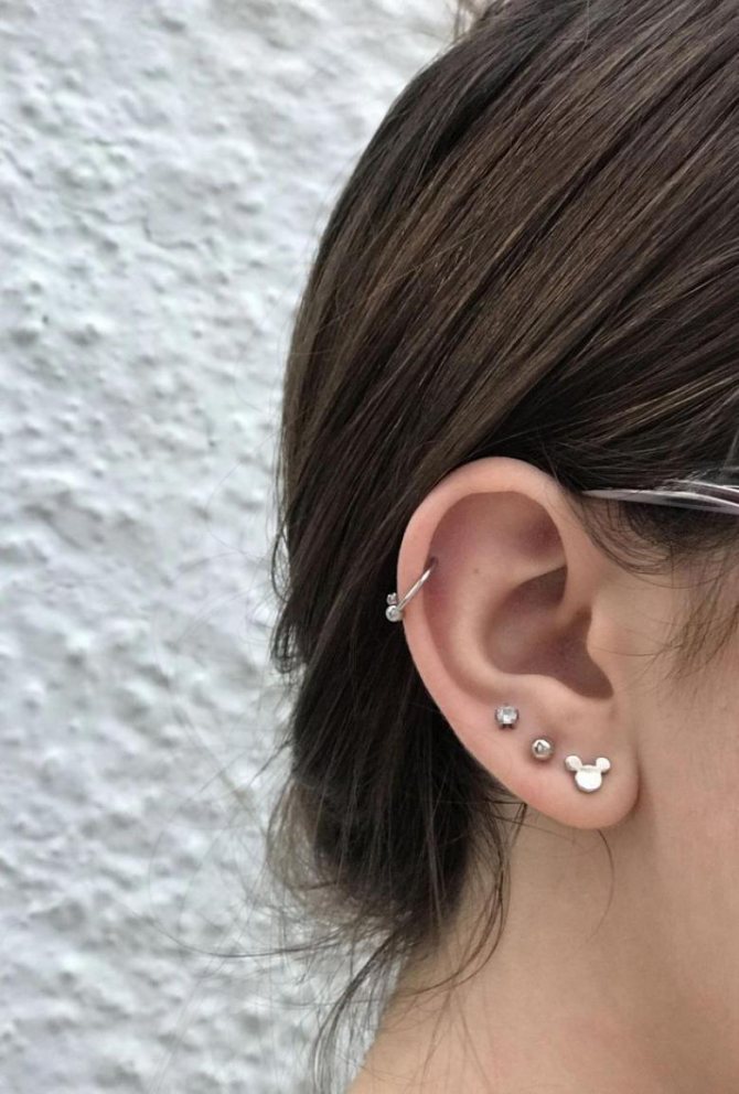 - There is no need to start with ear piercings from the cartilage, try experimenting with the lobe first - the procedure is less painful and heals quickly (up to 1.5 months).
