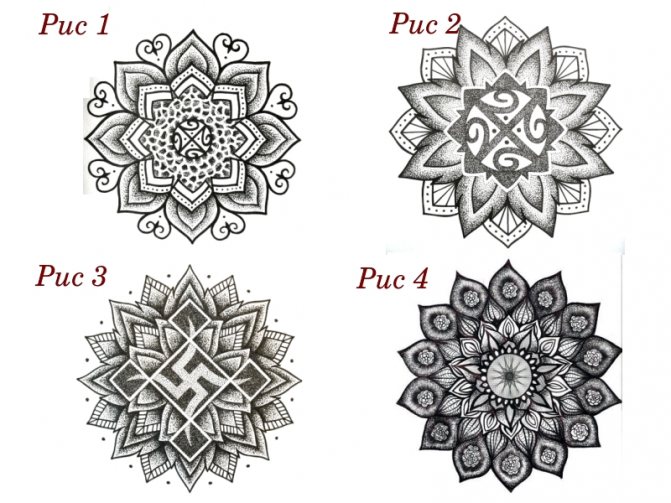 This way is more complicated. It requires exact measuring, because all the geometry of the mandala has to be strictly verified. But if you once thoroughly understand and realize the mechanism of creation of such pattern, then later on it will not be too difficult for you to draw your own mandalas for processing of various life situations in mandalotherapy or for fulfillment of wishes.