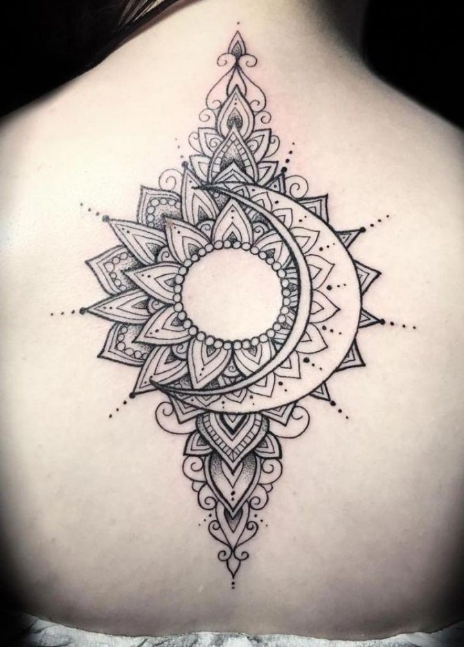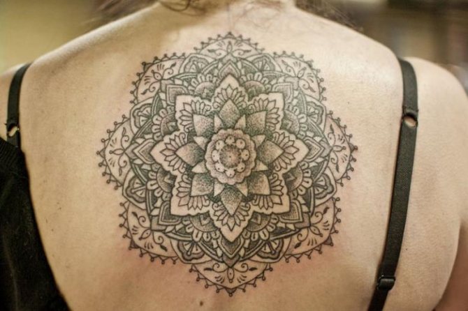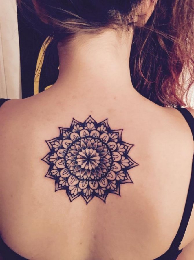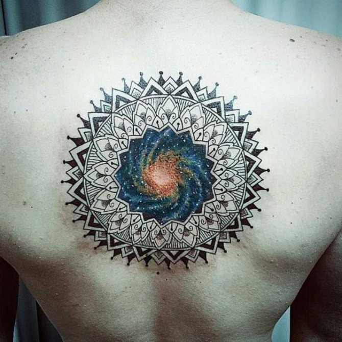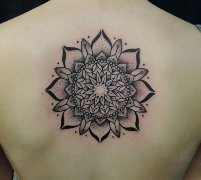 - The back is a special place. Esoteric teachings call it the most vulnerable part of a person, through which the negative energy penetrates. Therefore the mandala tattoo, located on the back, is an excellent protection against spoilage and surrounding negativity. In addition, the back is very convenient for placing large tattoos.