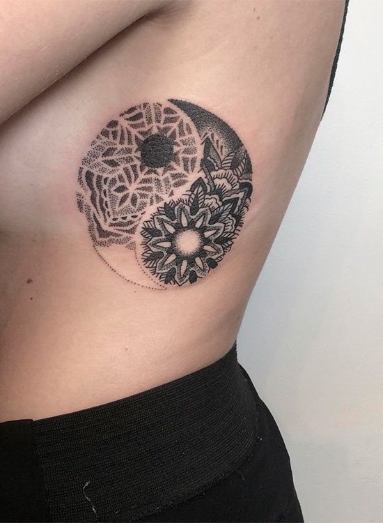 In the classic version, the Yin-Yang sign represents two perfectly balanced black and white elements in the shape of a circle, which symbolize the circle of life. Yin is cold, negative, dark and feminine, and Yang is warm, positive, light and masculine. Together they harmoniously complement each other and cannot exist separately. Because of this meaning, Yin-Yang tattoos are great for men and women and, as an option, are an idea for a tattoo for two.