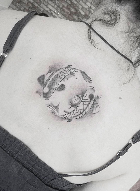 Another popular Yin-Yang substitution is the koi carp. The two halves of the symbol resemble the female and male of these fish. Floating together, they represent the harmony of the two opposing energies. In tattoos, the circular motion of the Koi fish represents the belief that all things in life are connected.