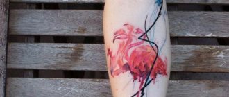 El estilo Acuarela presenta un tatuaje vibrante. Una imagen así resulta clara, delicada, y los colores pueden sobrepasar ligeramente los límites asignados y dar rienda suelta a la imaginación, cambiando los tonos en medios tonos y pasando suavemente al color de la piel.