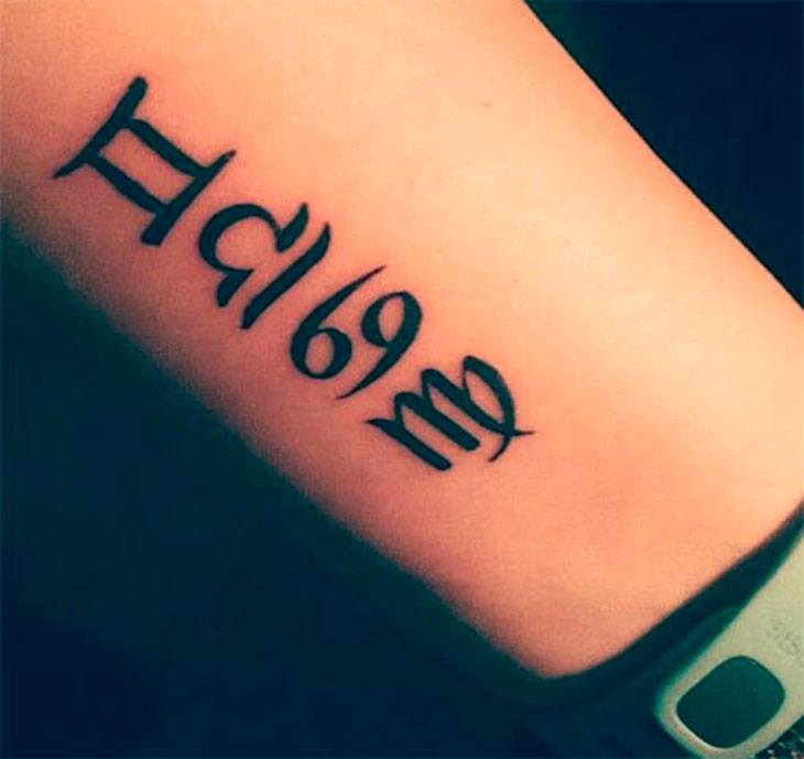 Un tatuaje en el cuerpo con la forma del símbolo de Virgo significa la búsqueda de la armonía y la perfección. Si se elige una imagen en lugar de un símbolo, el portador desea destacar su elegancia, su gracia, su capacidad de afecto, su sinceridad y su carácter creativo.