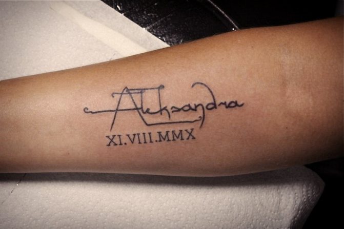 Los tatuajes con nombres y fechas de nacimiento de los seres queridos están de moda hoy en día. Estas inscripciones tienen un aspecto discreto y elegante, y llevan en sí mismas una carga semántica mucho mayor que la de los dragones y los ornamentos.