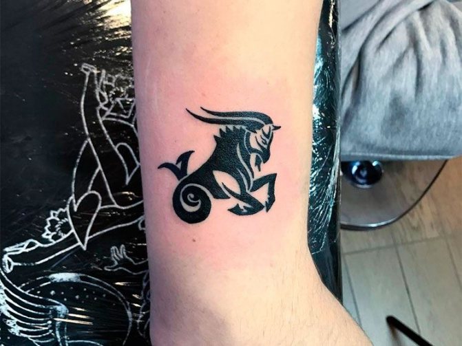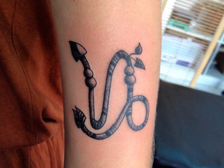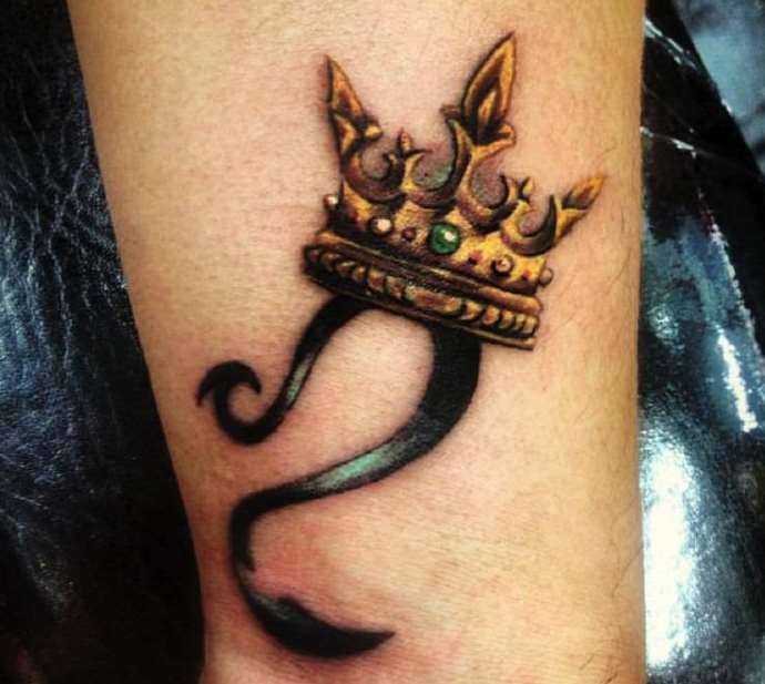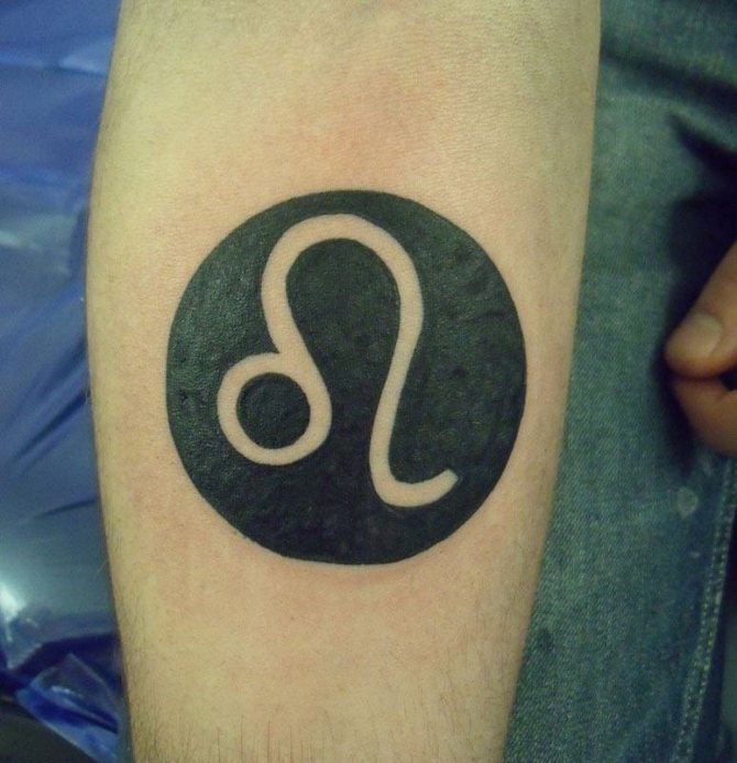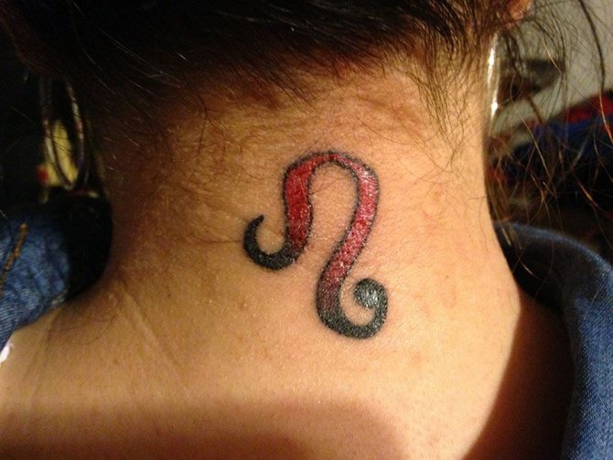 El símbolo de la letra n con una cola de caballo alargada en un lado es suficiente para indicar la pertenencia al signo. Este símbolo es un símbolo de autocontrol y enfatiza la contención en la cultura del tatuaje. En lugar de un símbolo, se suele tatuar la cara de un león o de un depredador de cuerpo entero. Si tal imagen no denota de ninguna manera, como el signo del zodiaco, que llevará un significado completamente diferente.