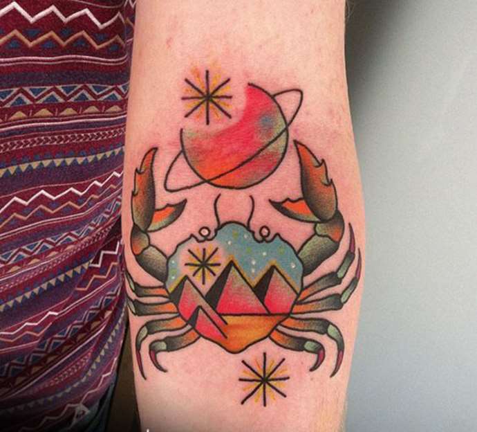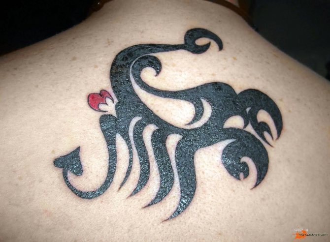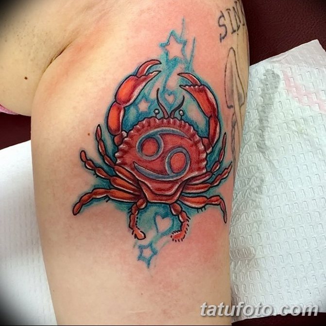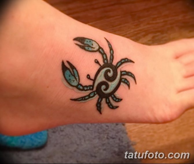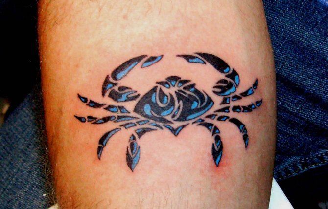 Cabe señalar que, al pintar la imagen de Cáncer, hay que precisar su esencia como signo zodiacal. Esto es importante porque el propio animal tiene un significado diferente en la cultura del tatuaje. El símbolo en el cuerpo puede significar el secreto - como la característica principal de los representantes del signo. También la imagen significa movimiento y el deseo de autodesarrollo como parte del autodescubrimiento. Las líneas redondeadas simbolizan la armonía interior y el infinito.