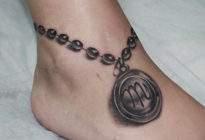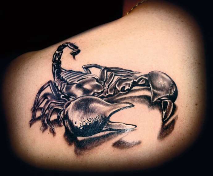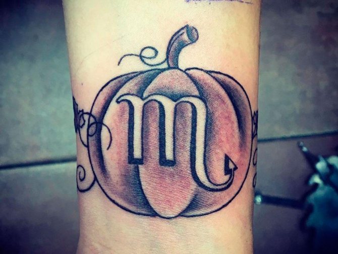 Un símbolo que se suele representar en el cuerpo, destacando su pertenencia a este signo del zodiaco, se parece a una letra latina m con una flecha al final. El significado de este tatuaje puede deducirse de su diseño. Si el aguijón del símbolo o de la imagen está resaltado, puede significar valor y voluntad de lucha. Además, el diseño puede significar sensualidad mezclada con la voluntad de su dueño.