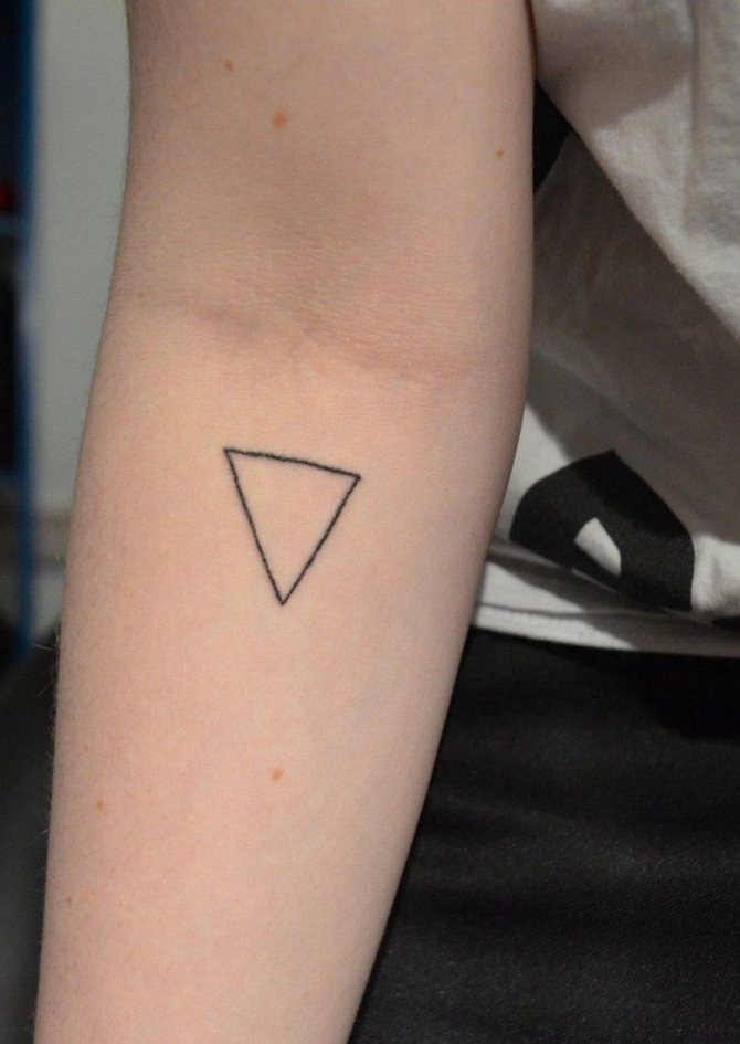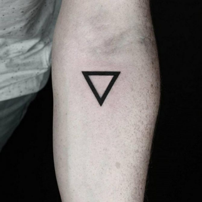 Un tatuaje moderno con un triángulo invertido indica el fuerte carácter del portador y su inherente lucha por lo mejor. Este símbolo puede mejorarse añadiendo un ojo que todo lo ve, un árbol, etc.