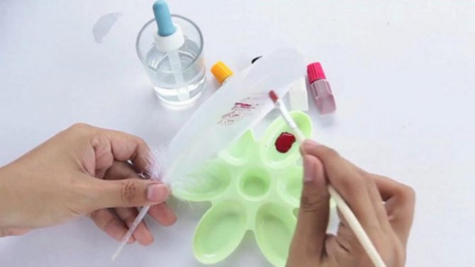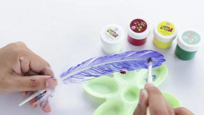 La acuarela es una pintura a base de agua, por lo que se impregna rápidamente en la pluma. No es necesario aplicar una capa de color muy gruesa, ya que no sólo se extenderá la pintura de forma desigual, sino que también estropeará toda la manualidad. Los mechones se pegarán y se erizarán mucho.