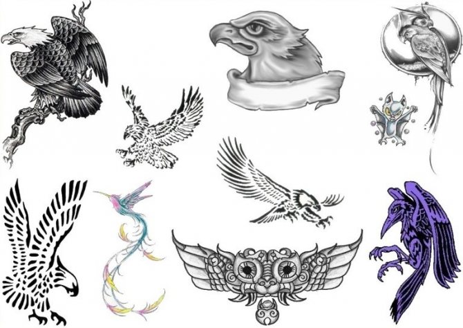 El símbolo del pájaro significa la libertad, el vuelo libre en el cielo sin límites, los sueños no realizados y la fuerza inhumana. Hoy en día, los tatuajes con esta imagen son populares. Y, se pueden ver muchas variantes hermosas de diferentes aves en el cuerpo humano. Quienes han elegido este particular tatuaje, ponen su propio significado en la imagen, además de que el significado oculto de la imagen de los pájaros conlleva un símbolo de parentesco con los elementos del aire y el viento. Los tatuajes son populares no sólo entre el sexo débil, sino también entre los hombres.
