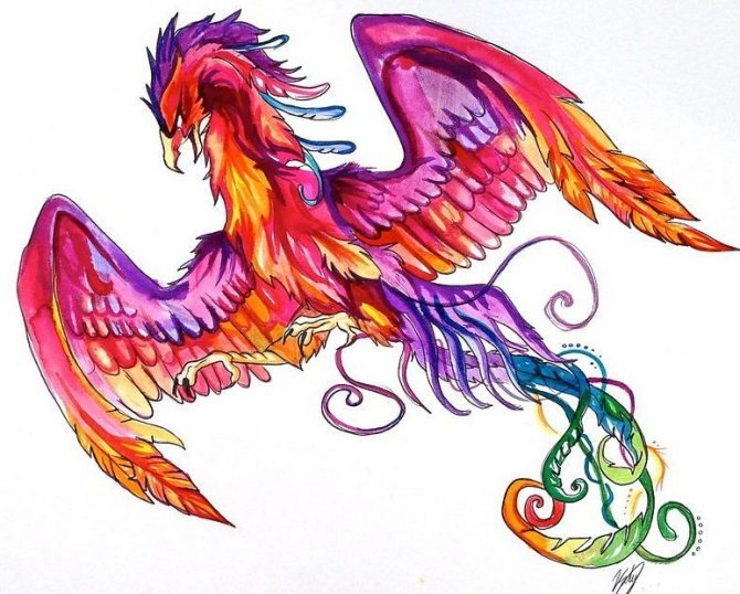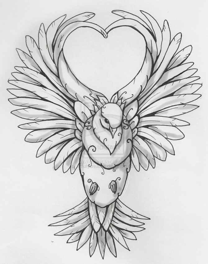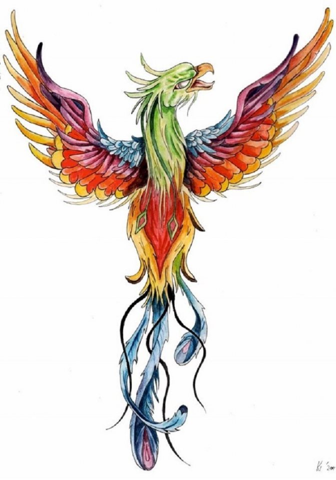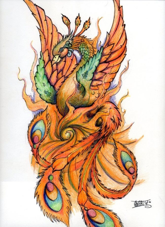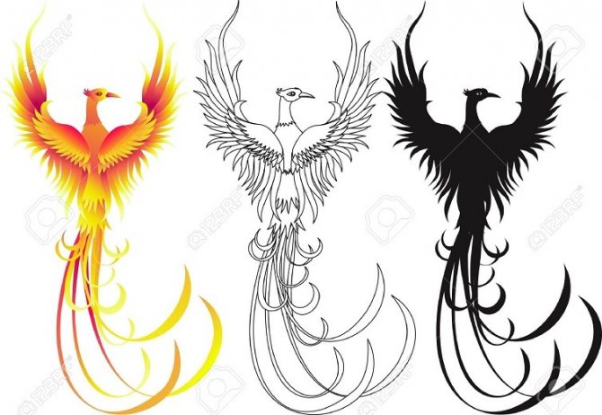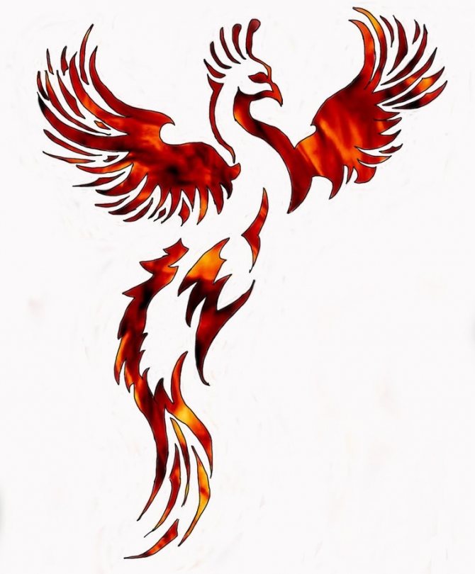 - Fabuloso pájaro - fénix fénix El tatuaje de un pájaro mágico - el fénix - tiene un significado místico, simboliza la resurrección de las almas, la inmortalidad humana, ayuda al portador a hacer frente incluso a las dificultades insuperables, da fuerza, confianza, actúa como un fuerte talismán.