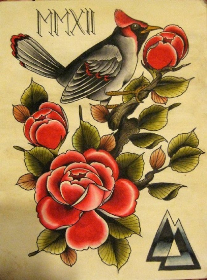 - Cuando la primavera entra en sus derechos, comienza el renacimiento, la naturaleza revive, vienen los días cálidos de bienvenida. Carmesí - Es un símbolo de renovación, de renacimiento. Es una imagen de cambio a mejor, lo que significa que el portador del tatuaje será feliz después de experimentar dificultades de diversa índole.