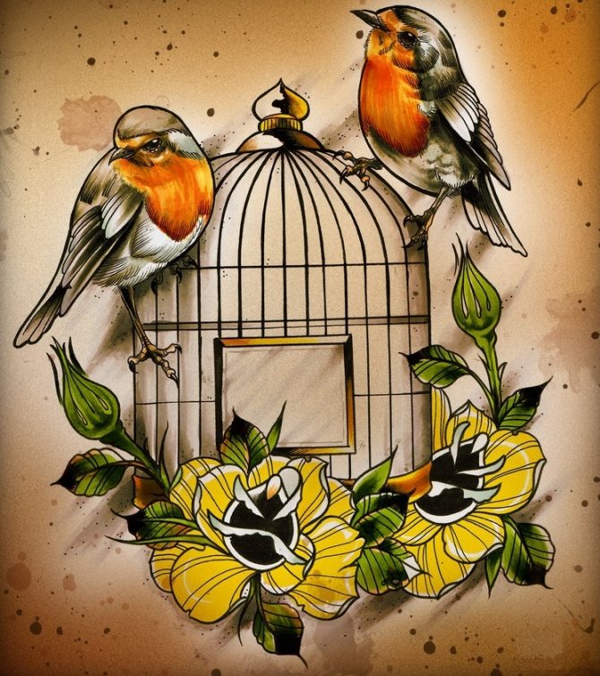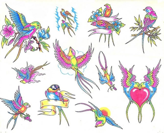 Tatuaje con diferentes pájaros, una bandada de pájaros: significado, ejemplos de tatuajes, fotos