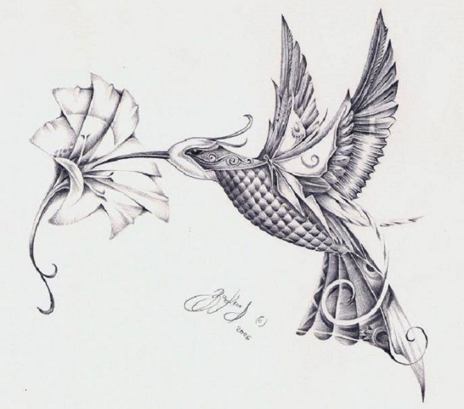 La adición de detalles inusuales, algunos elementos de arte inserta una imagen ya realista ayudará a que el estilo de aplicación de los lunares thrash. Este estilo lo eligen las personas que rechazan la realidad. No hay reglas para ellos, un colibrí en este estilo expresará la audacia y la completa independencia del hombre. Las técnicas tradicionales y de la vieja escuela existen desde hace mucho tiempo, por lo que este estilo está probado. Puedes dar un significado profundo a ese dibujo y hablar a los que te rodean de una parte concreta de tu vida o de tus planes y perspectivas de vida compartidos. A menudo hay dibujos delicados y sutiles realizados con una técnica de Detwork muy acertada.