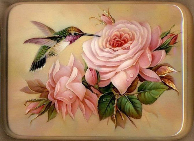 Existen unas 300 variedades de colibríes, que se diferencian por su coloración, la forma de la cola y las crestas. Por ello, la paleta de colores de la imagen es muy variada. Las opciones más populares son el cuello de esmeralda, el topacio de fuego y la amatista volante. Los pájaros brillan en diferentes colores: esmeralda, azul intenso, rojo, blanco, amarillo y rosa.