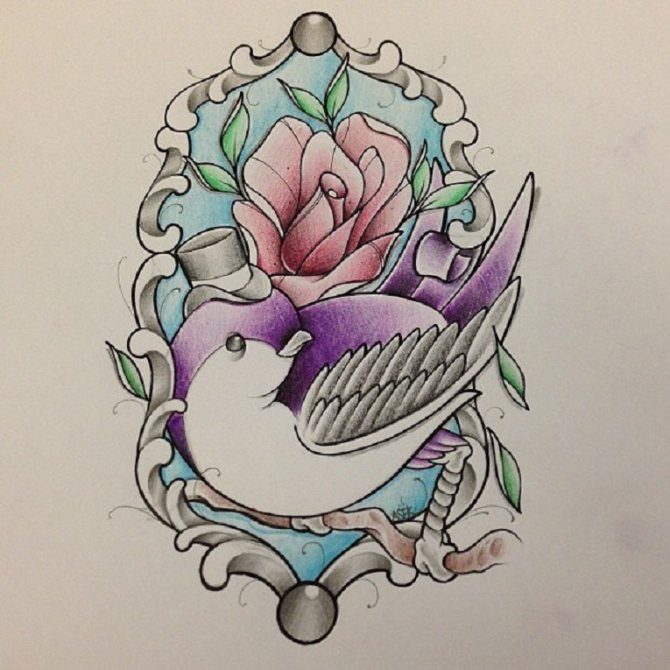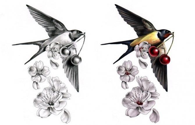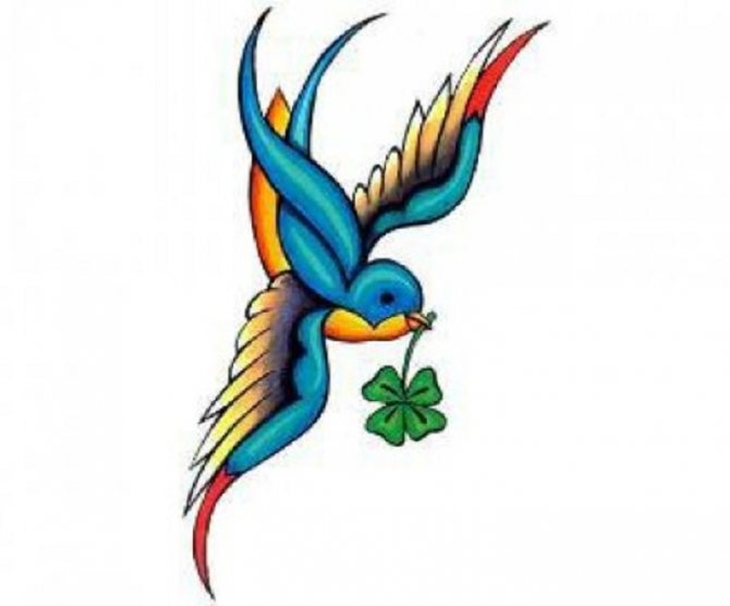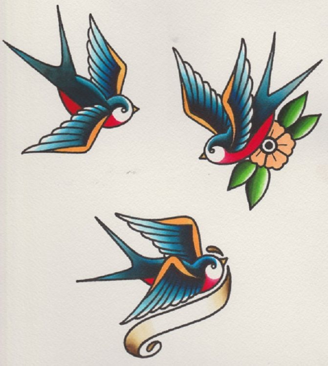 - Si decide hacer Swallow en el cuerpo, primero hay que estudiar su significado. Esta imagen se interpreta ahora como la devoción a sus seres queridos y al hogar en el que vive. Estas personas son fieles a su alma gemela y aman la constancia. Los tatuajes con una golondrina también son más frecuentes entre los marineros, porque cuando ya se ven estas aves, significa que su hogar está cerca, que el barco se acerca a tierra.