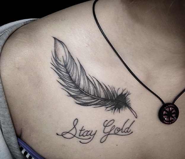 Son especialmente populares los tatuajes en forma de plumas de pájaros en las chicas. Y, efectivamente, estos dibujos quedan muy bien en el cuerpo. El significado del tatuaje es casi similar al simbolismo de los pájaros. De hecho, las plumas vuelan fácilmente con el viento debido a su ingravidez. Son propias de las naturalezas que aman la libertad, la creatividad, las ideas creativas.