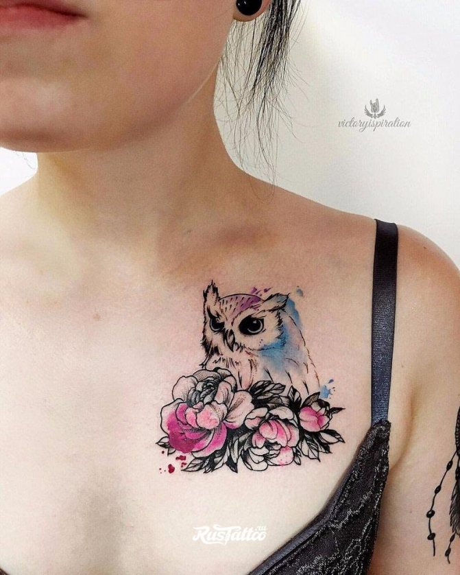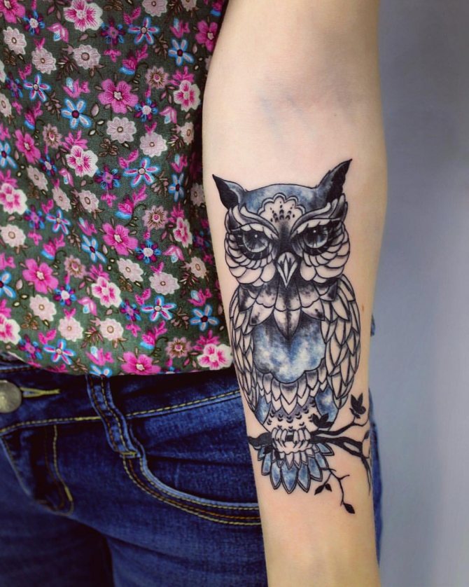 Hace un par de cientos de años, el búho era una imagen oscura, una fuerza siniestra que se asociaba con la magia y el mundo subterráneo. Sin embargo, hoy en día la opinión sobre el tema ha cambiado. La gente cree que la imagen de un búho significa soledad, inteligencia desarrollada y tranquilidad. Llegamos a la conclusión de que este tatuaje es ideal para personas pacíficas y sabias que no tienen prisa por tomar decisiones precipitadas. El diseño con un búho puede colocarse en cualquier parte del cuerpo, no hay ningún canon en este sentido. Pero a menudo se aplica en las manos o en los pies.